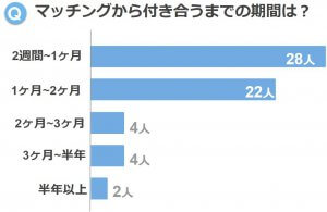 - 付き合うまでの期間は2週間~1ヶ月が最も多い