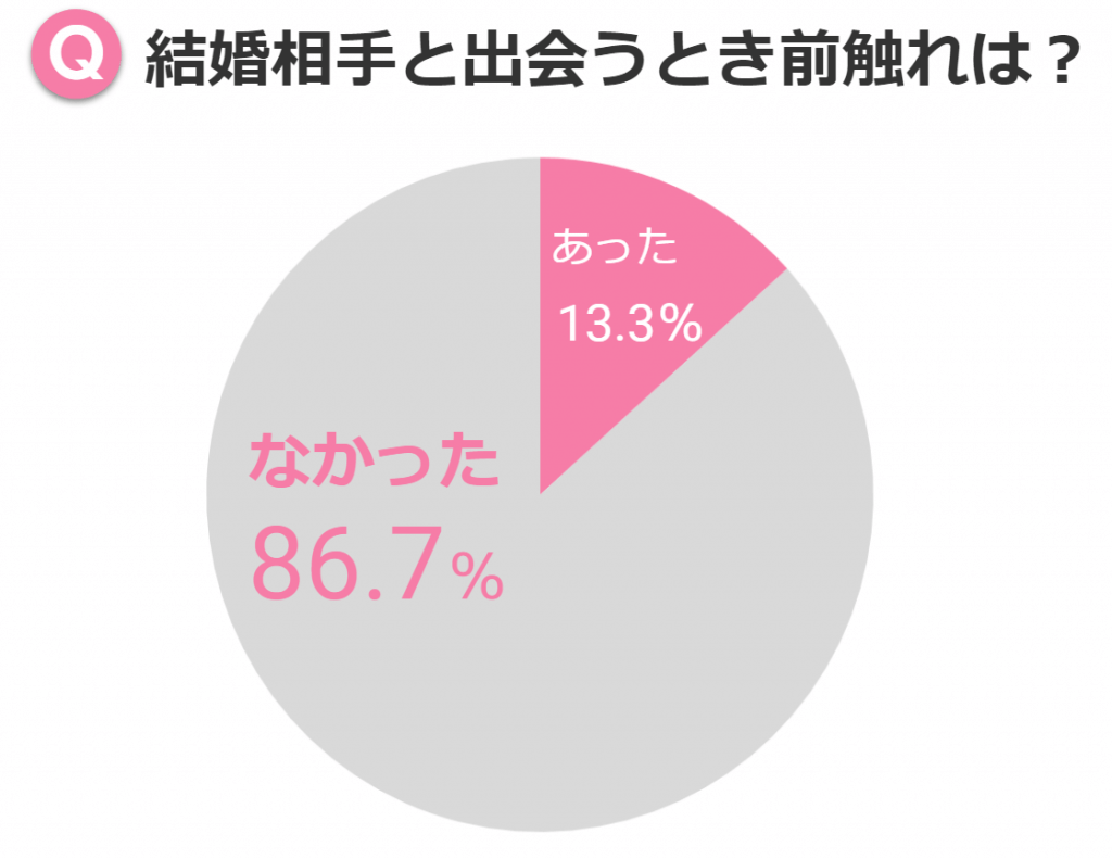 既婚者300人に「この人と私は結婚するんだろうな、というような予兆はありましたか?」とアンケートを実施したところ、会ったと答えた人が13.3%、なかったと答えた人が86.7%という結果でした。