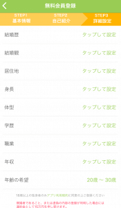 登録が終わると、この項目以外にもあなたの雰囲気や勤務地、資産、ライフスタイルなどもっと細かい設定ができるようになります。