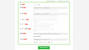 ニックネーム、性別、生年月日、パスワードを入力する画面になります。