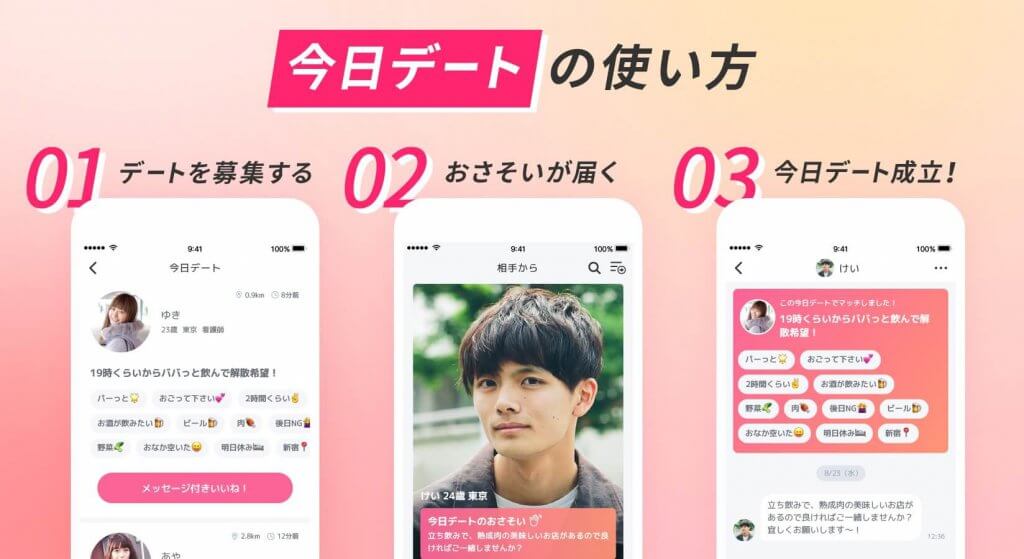 それでは今日デートの詳しい使い方を、男女別にそれぞれ解説します!