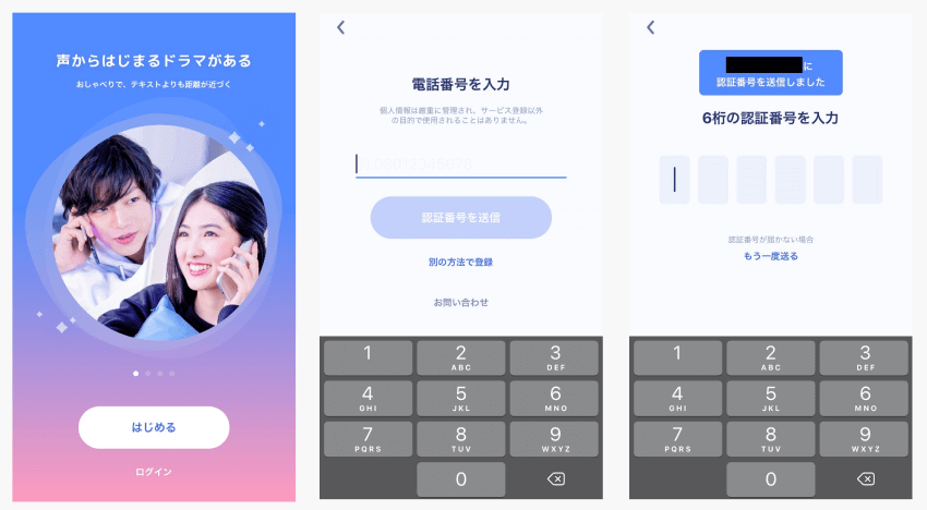コエリーをインストールし、電話番号を入力。認証番号を受け取る。