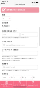 すると上画像のような入力画面が表示されるので、個人情報と支払い方法などを入力したらお申込み完了です。