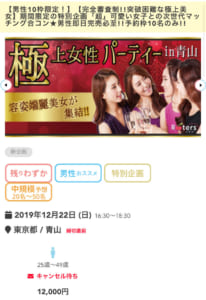パーティーの種類は「同世代コン」「ヨガコン」「エンジニアコン」など、実に多様な種類が用意されていて、365日毎日開催されているため、どんな方でも自分に合うパーティーが選べます。