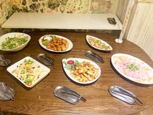 全員の自己紹介が終わったくらいのタイミングで、軽食バイキングがスタート。