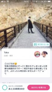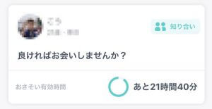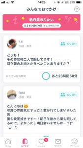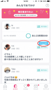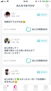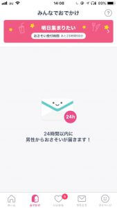 おでかけ機能は設定してから24時間まで有効です。そのままアプリを放置していればタイムライン形式で男性からのお誘いが来ます。