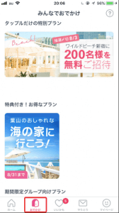 おでかけ機能では、おでかけを設定するのは女性です。まずアプリのトップ画面左下のおでかけをタップします。