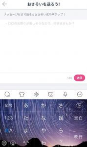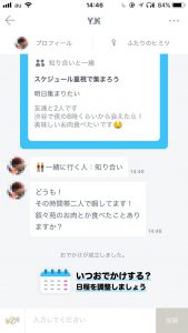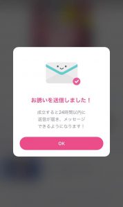 お誘いを女性が受けてくれるとおでかけ成立となり、メッセージのやりとりができるようになります。