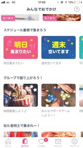 おでかけは今日これからのデートを募集することもできるし、とりあえずデート相手を募集してそのあとに日程を決めることもできます。