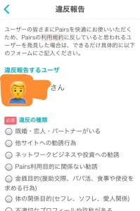 ペアーズのアプリには、ペアーズユーザーに適さない利用者を通報する機能があります。