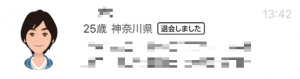 ちなみに、マッチンング後にブロックされた人は「退会しました」と表示されます。