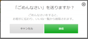 すると、どの画面でも「ごめんなさい」を送りますか?というポップアップが表示されるので、「送信」を押すと「ごめんなさい」が完了します。