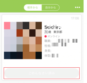 機能の紹介をした時にもお話ししましたが、「ごめんなさい」をするとお相手のプロフィールが2度と見れなくなります。