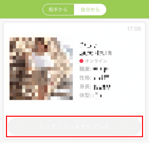 「ごめんなさい」は「マッチングしませんでした」と表示されますよね。