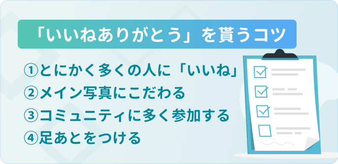 そこで次に、「いいね」をした相手に「いいねありがとう」を貰えるコツをご紹介します。