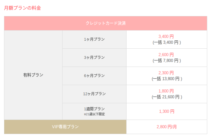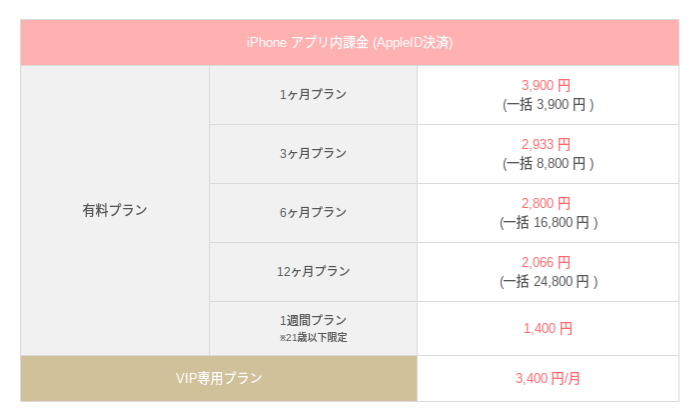 他にも、21歳以下限定の1週間プランでもVIP専用プランでもWeb版が安いです!