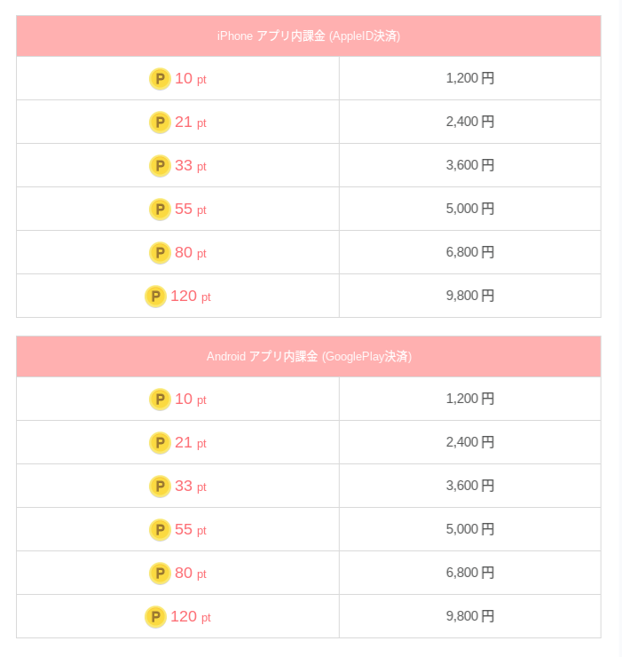 課金すると使える機能やポイントの料金について知りたい方はこちら↓