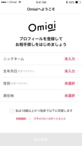 ※Omiai登録画面