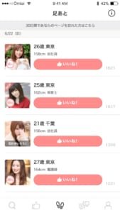※Omiaiの足あと画面イメージ