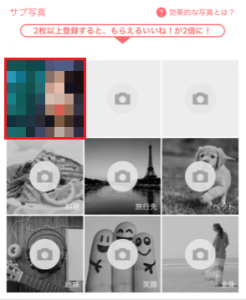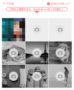 サブ写真はプロフィールを開いたときに見ることのできる写真で、枚数は最大9枚です。サブ写真を見てくれる方は基本的に自分に興味を持ってくれている方なので、自分がどんな人か知ってもらえるような写真を載せましょう。