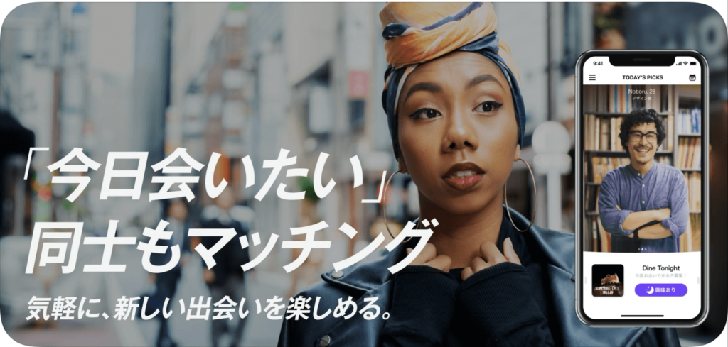 「デートにコミットする」がコンセプトのマッチングアプリです。マッチングアプリではたくさんの人とメッセージし合って、気の合う相手を探すことが多いですが、Dineではマッチングしたらデートを設定していきます。編集部がおすすめのデート先を紹介してくれるため、実際に出会ってからスムーズにデートを設定するます。アラサーになって周りが結婚し始めたのをきっかけにマッチングアプリを開始。アプリ以外にも合コンや街コンなど様々な出会いの場で婚活中。