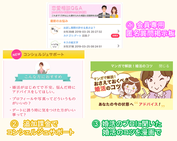 ユーブライドでは匿名で質問できる掲示板があったり、コンシェルジュに相談できたりと婚活初心者でも安心のサポートが充実しています。