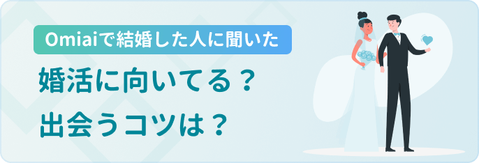 Omiaiを始めてからたったの2ヶ月で結婚を意識できる交際相手が見つかったということですが、なぜ短期間で自分と合う相手に出会えたのでしょうか。次に、婚活を成功させるコツをお聞きました。