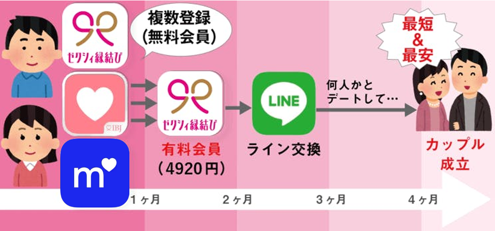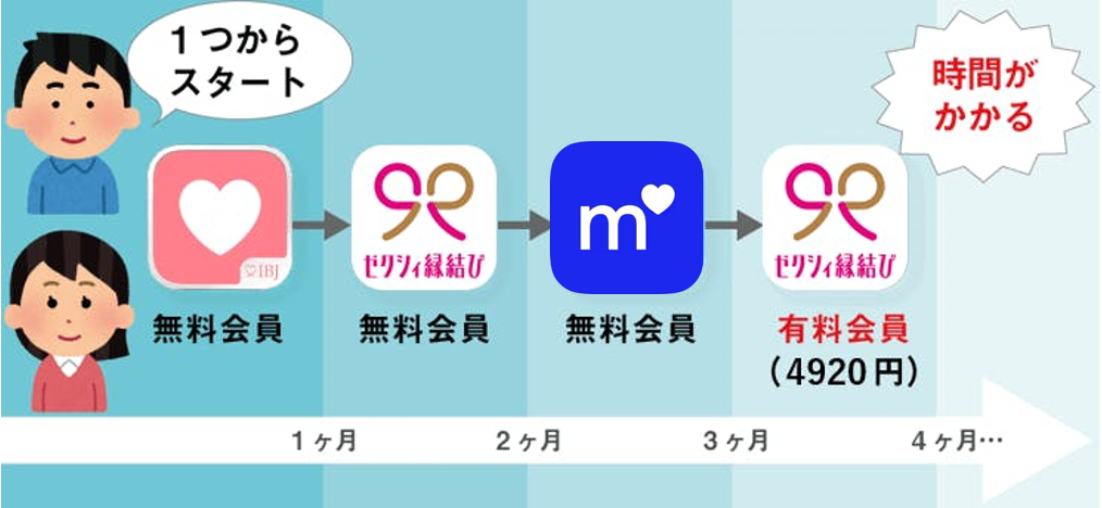 複数のアプリを同時に平行して使うと、より効率的にすばやく良い出会いが見つかります。