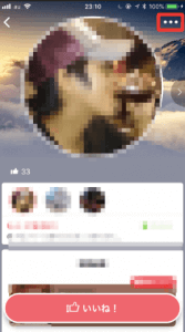 まず相手のプロフィール画面右上、またはメッセージ画面右上の…をタップ。