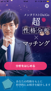 DaiGoが自分の性格や恋愛観を診断してくれて、その結果をもとに内面の相性がいい相手を紹介してくれるんです。