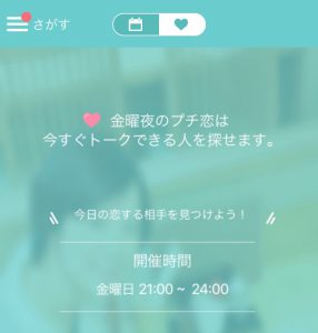 金曜日の21:00~24:00まで今すぐトークできる人を表示してくれます。