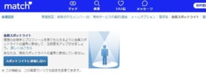 マッチドットコムでは「会員スポットライト」という設定を変えないと