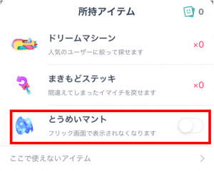 しかし、とうめいマントを発動してしまうと異性から一切【いいね】されなくなります。