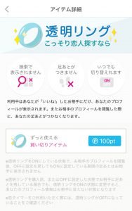 透明リングはゼクシィ恋結びで使えるポイントで100ポイントを支払うと使えるようになります。