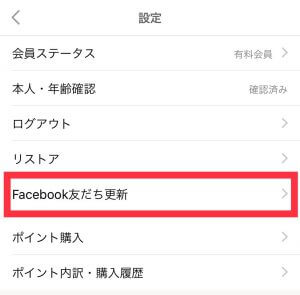 ちなみに、設定からFacebook友だち更新をすると、登録時から増えた友達が更新されます。