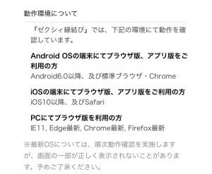 ログインができない方は、自分の使っているブラウザやOSがゼクシィ縁結びの動作環境に合っているのか確認してみてください。