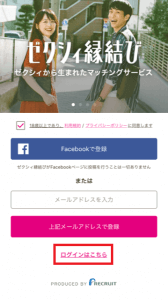 ゼクシィ縁結びのログイン方法はFacebookログインとメールアドレスログインの2種類があります。