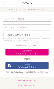 「メールアドレスでログイン」か「Facebookログイン」をタップするとログイン完了です。