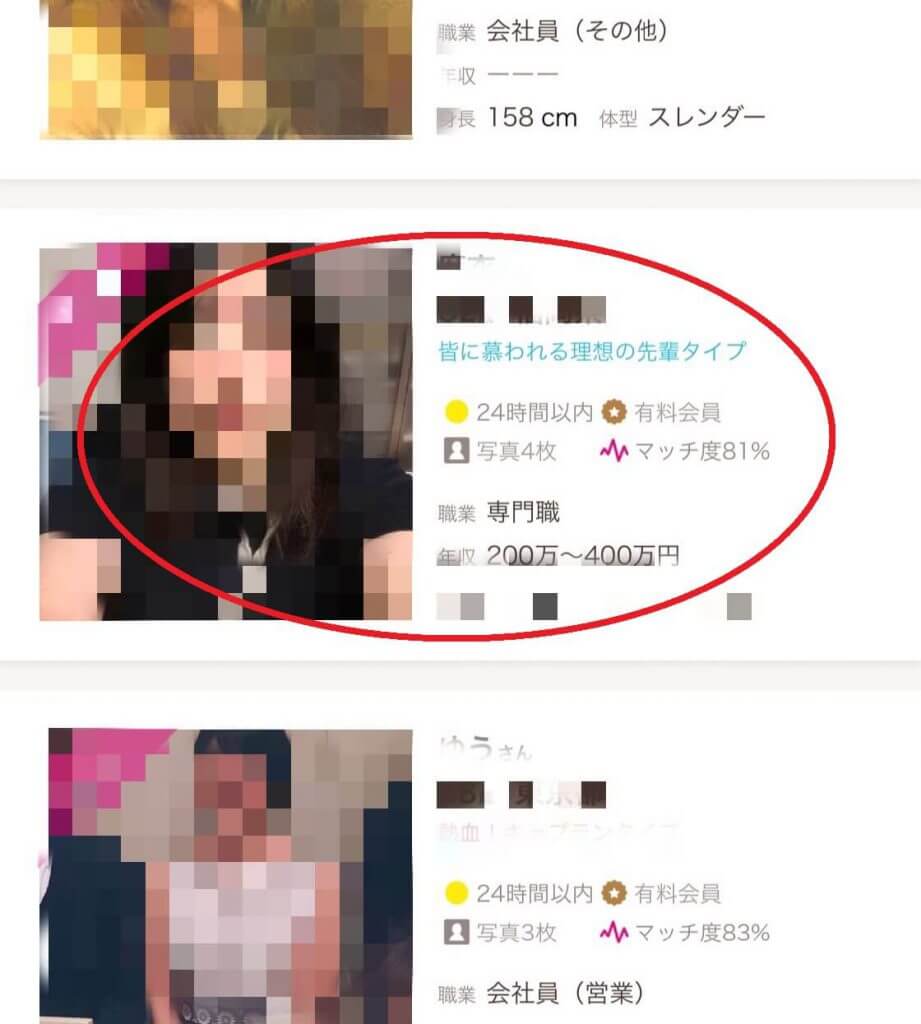- 顔写真を登録しないと異性の写真が見れない