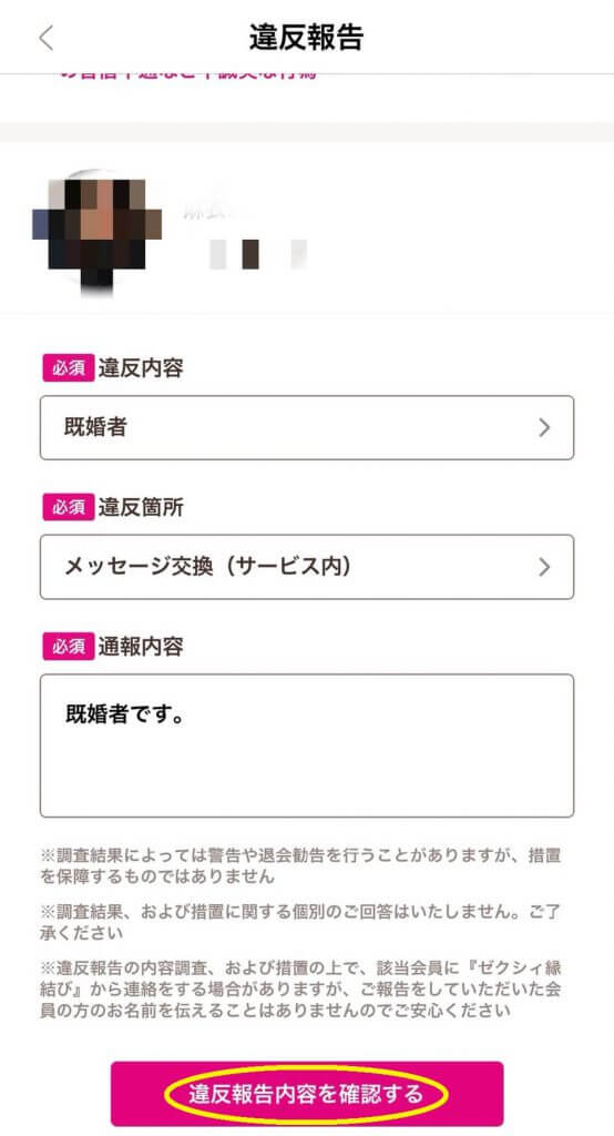5. 「違反報告内容を確認する」をタップ