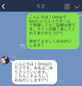 Omiaiで10日メッセージをやり取りして、やっと聞き出せた相手の情報を、Lineなら3日程度で聞くことができるかもしれません。