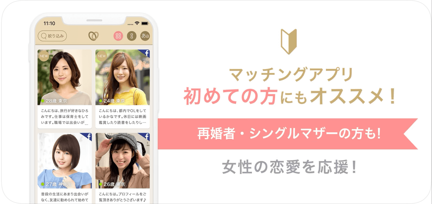 再婚やシングルマザー・シングルファザーの方、もしくはそのような経歴に理解のある方におすすめのマッチングアプリです。