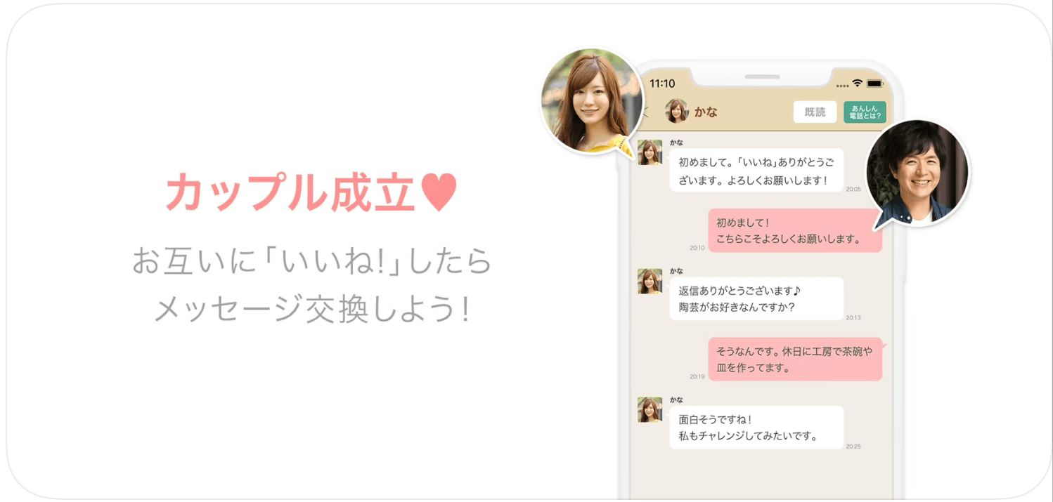 | 特徴 | 30・40代が多い 再婚・シングルマザー/ファザーが多い アプリ内で通話可能 |