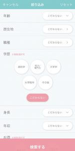 好みのタイプを年齢、身長、体型など、カテゴリーごとに検索することができます。